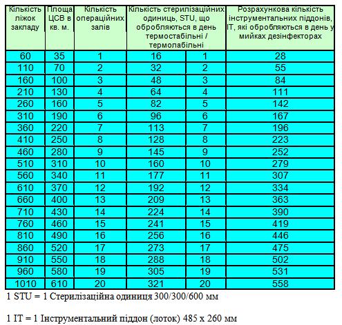 Для ЦСВ, які забезпечують стерильними ВМП медичні відділення, вказані вище